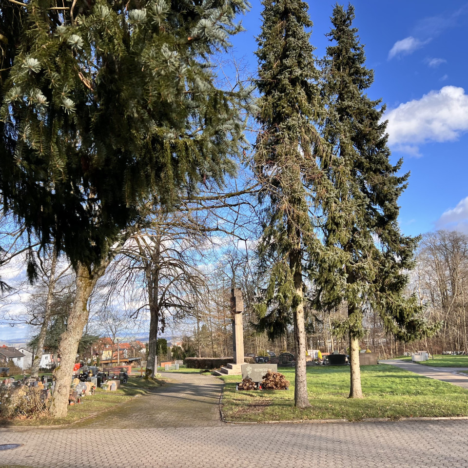 - Urnengrab / Urnenstele: Spezielle Grabstätten für die Beisetzung von Urnen.